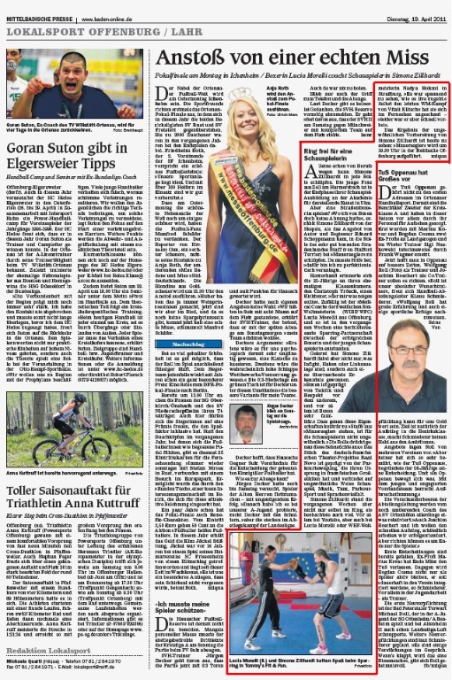 Lucia trainiert mit Schauspielerin Simone Zillhardt ... Heute Bericht im Offenburger Tageblatt