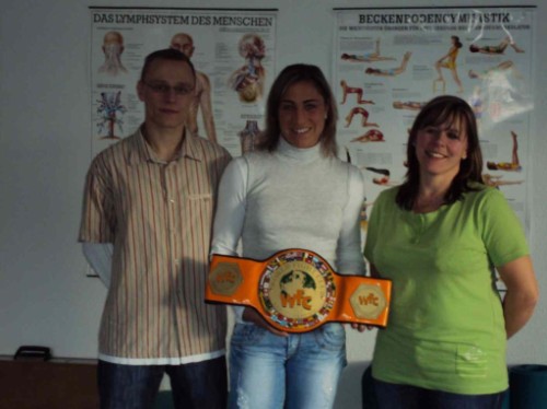 wurde zusammen mit WBC-Weltmeisterin Myriam Chomaz vor Nadia's Fight in den Ring gerufen und als frischgebackene Weltmeisterin