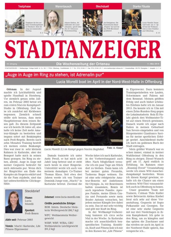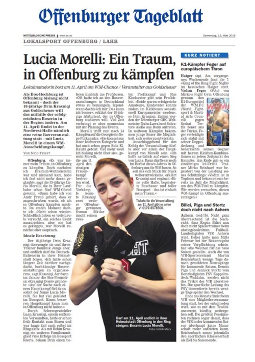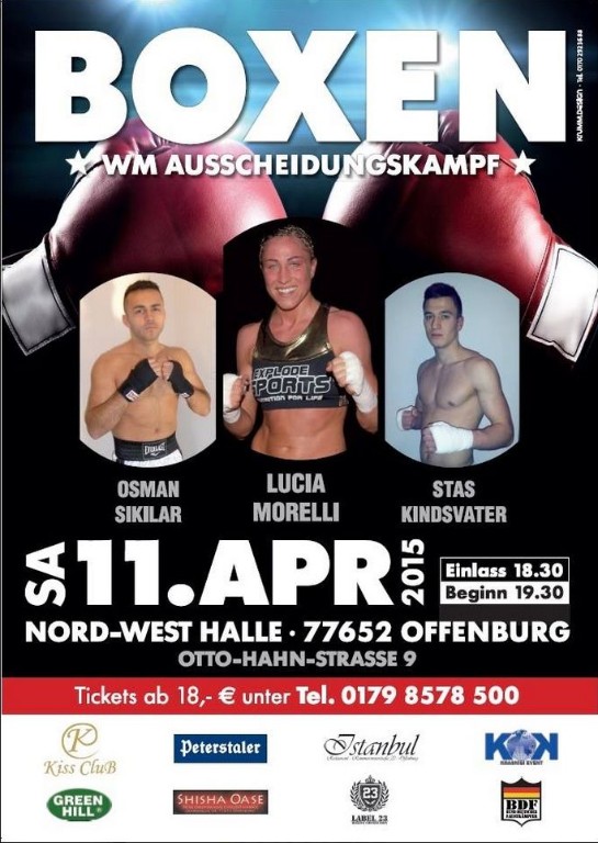 Endlich ist es soweit: Lucia boxt am 11.04.2015 in OFFENBURG in der Nord-West-Halle. Es handelt sich