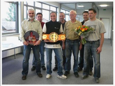und die Geschäftsführung der Firma Schäfer warteten mit Sekt und Blumen auf mich. Sie gratulierten mir zu meinem WM-Sieg und ich habe mich
