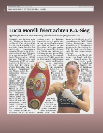 Der Kampf war die Generalprobe für die erste Titelverteidigung ihre WIBF Titels. Der Titel wird im März 2012